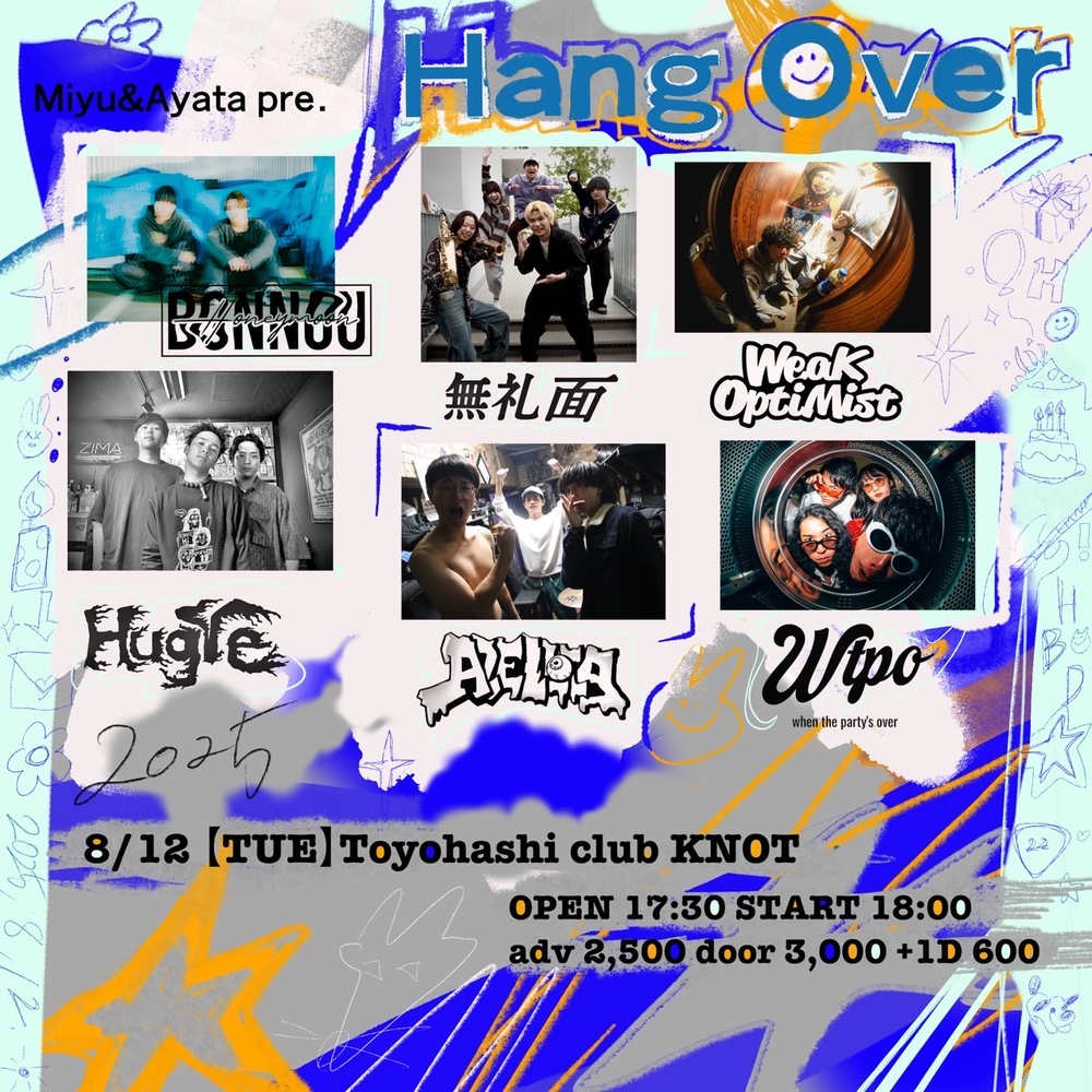 Miyu&Ayata pre."Hang over" SCHEDULE 2025/08/12(火) 18:00 - 豊橋Club KNOT OPEN/START 17:30/18:00 ADV/DOOR ¥2500/¥3000 +1D w/AZELLIA.when the party's over .Hugre.Weak optimist.無礼面 Miyu & Ayata pre. “Hang Over” 8/12(Tue.)豊橋 club KNOT adv 2500円 door3000円 +1D600円 URLをコピーする 報告する
