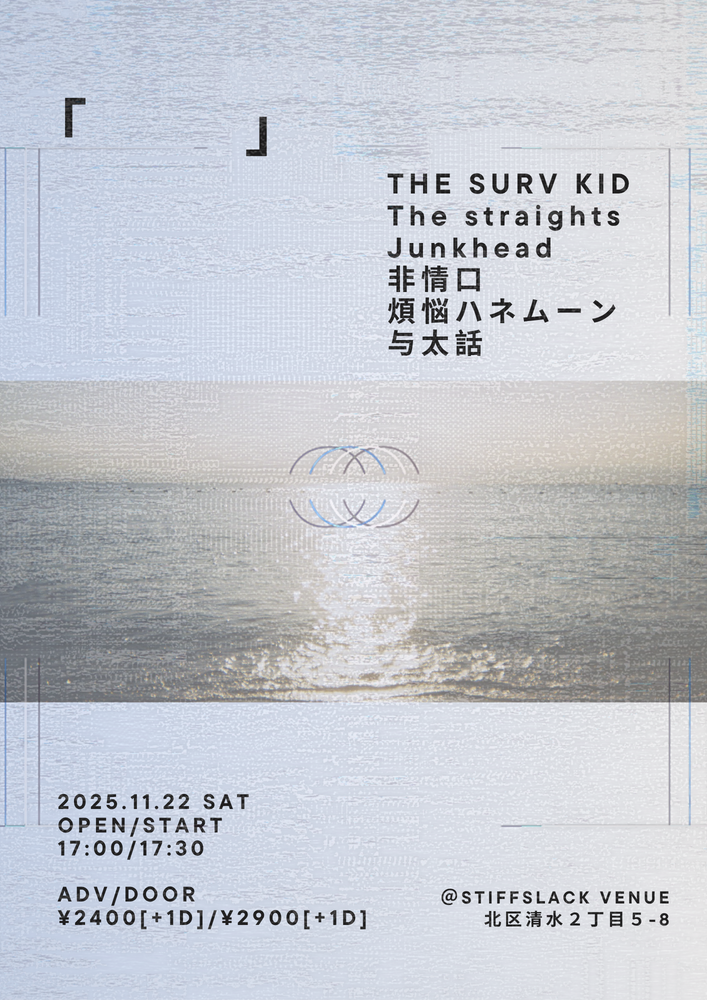 「 」 SCHEDULE 2025/11/22(土) 21:28 - 「 」・日時:11月22日(土) open/start 17:00/17:30(予定※変更あり)・会場:stiffslack 名古屋市北区清水2丁目5-8 URLをコピーする 報告する